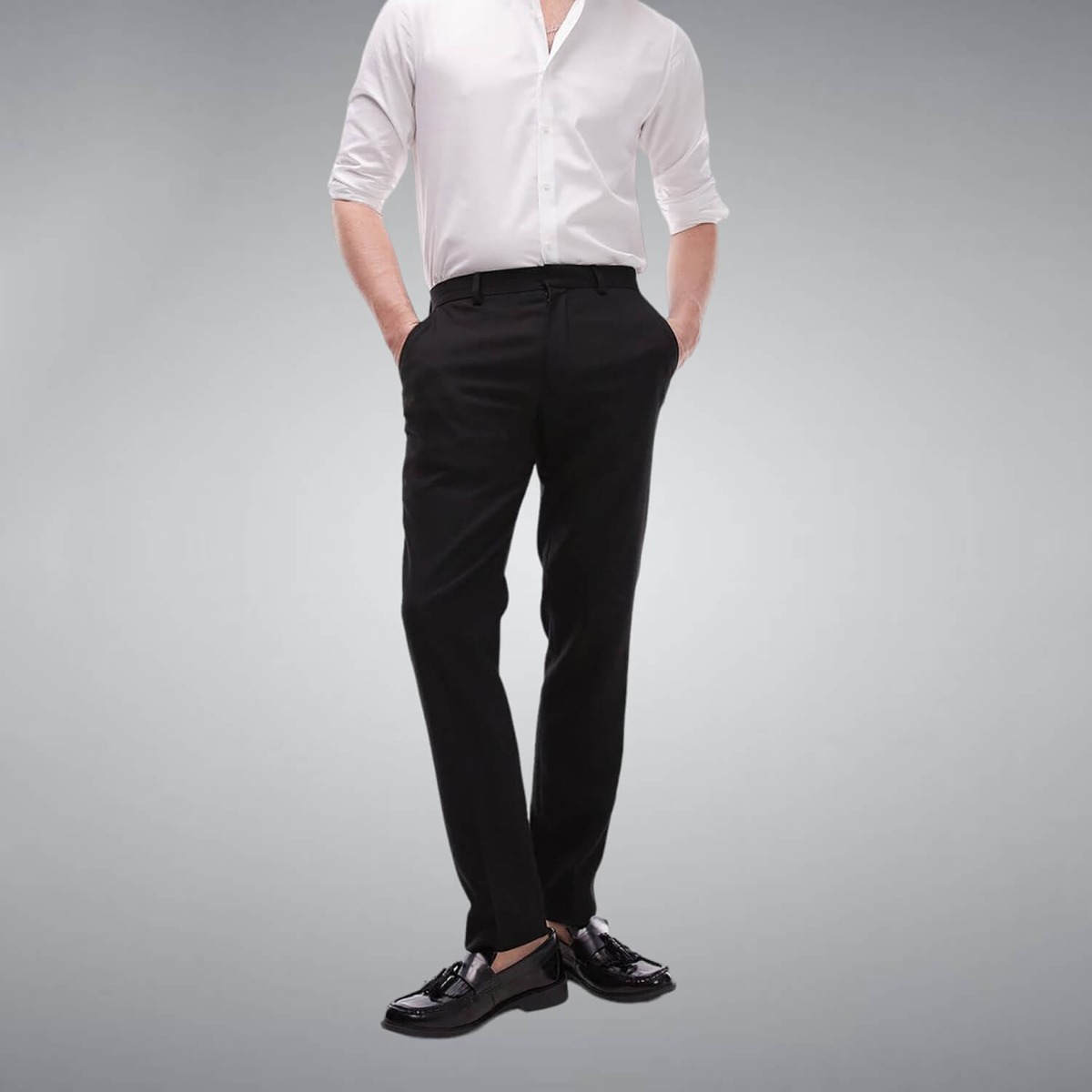 The Black Slim fit Pant combine style, comfort, and durability, making them the ideal choice for any man’s wardrobe. Elevate your formal and business attire with these essential slim fit trousers.