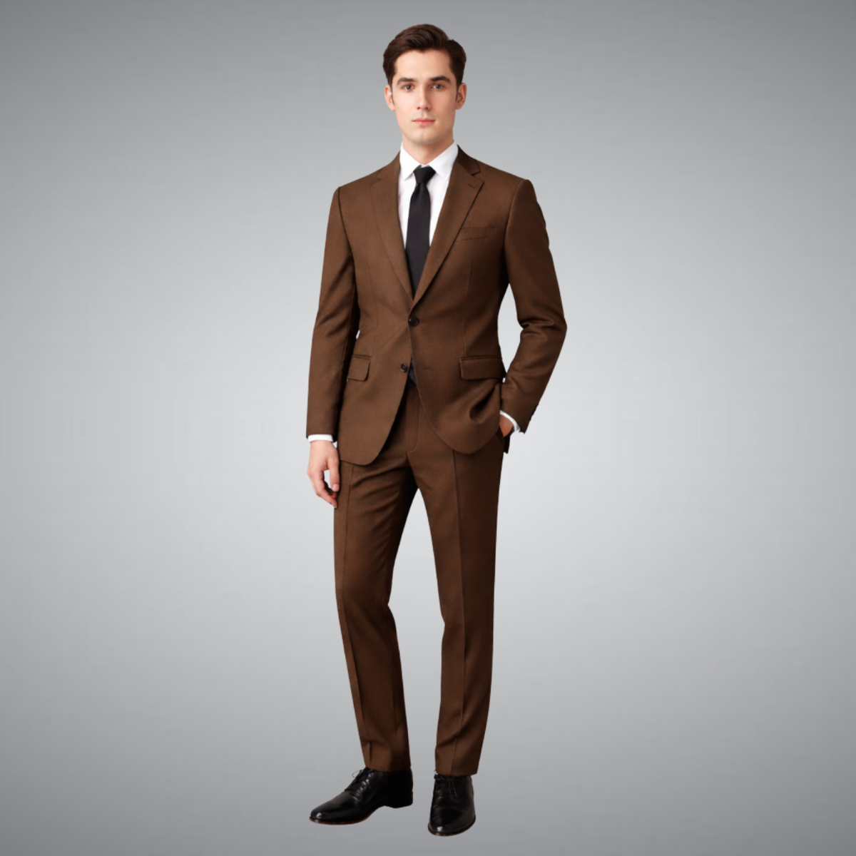 The Men’s Brown Suit is a smart addition to any formal wardrobe. It works well as a business suit or wedding outfit. This tailored fit men’s suit offers comfort, style, and a polished look for every formal occasion.