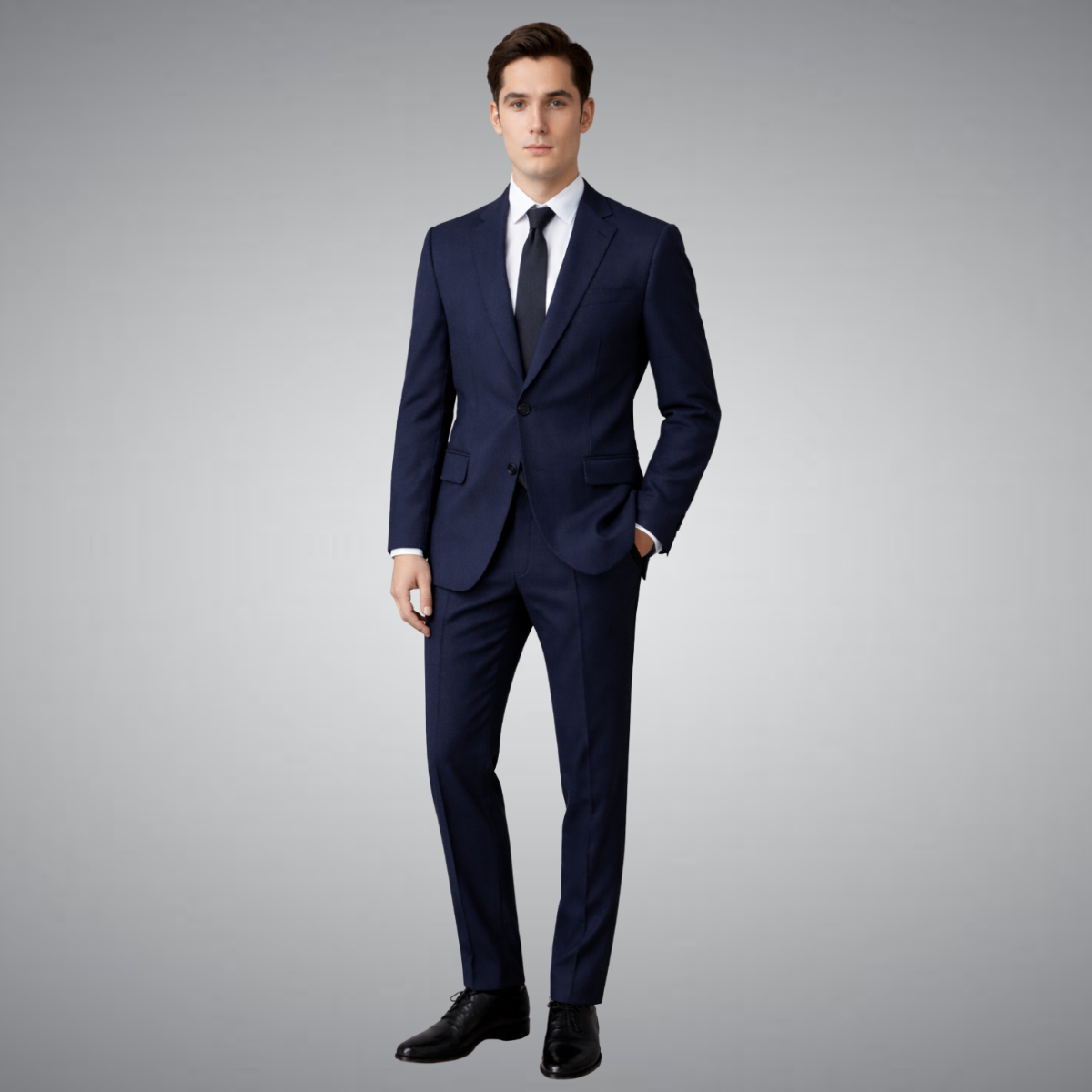 - Classic navy blue business suit style