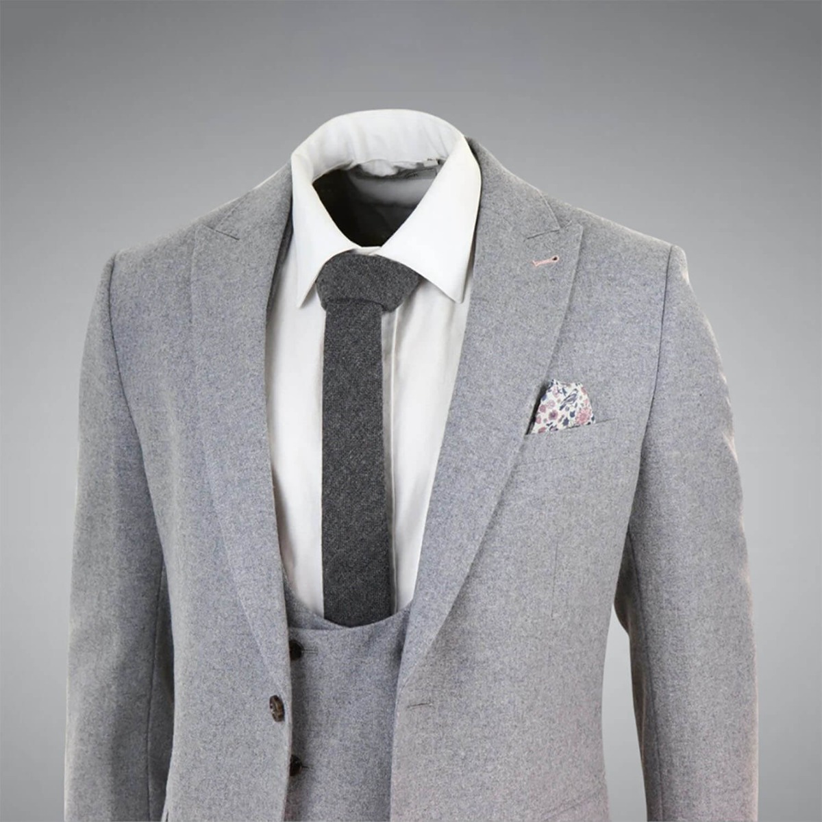 Looking sharp has never been easier with this Men Wool 3 Piece Double Breasted Grey Suit. It's perfect for formal events, business meetings, and weddings. This suit is for men who want to look stylish and elegant at any occasion.