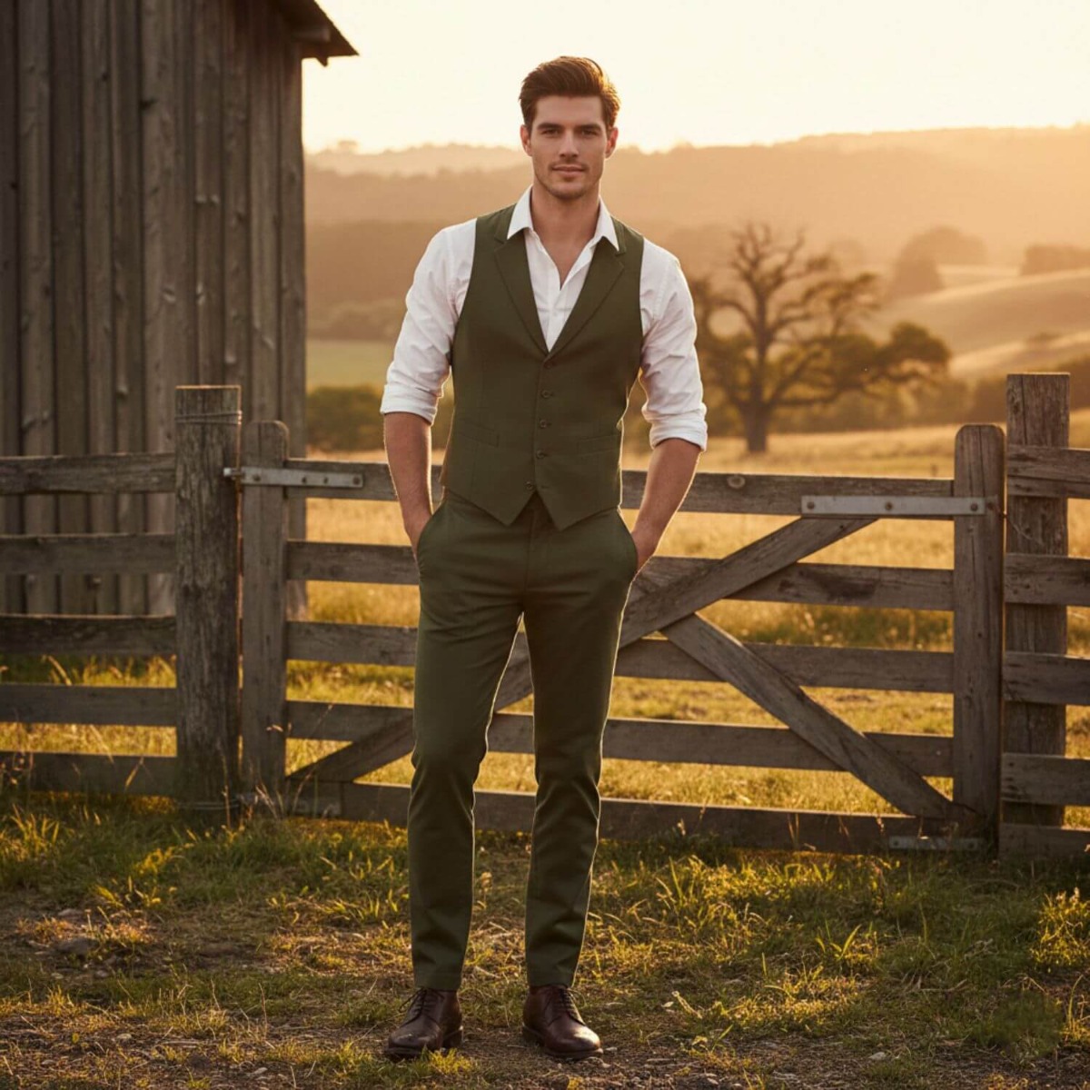 Choose this classic olive green vest men's style for a confident and stylish look. It stands out with elegance without being too bold. This groomsmen olive green vest is a must-have addition to any formal wardrobe, making you look polished at every event.